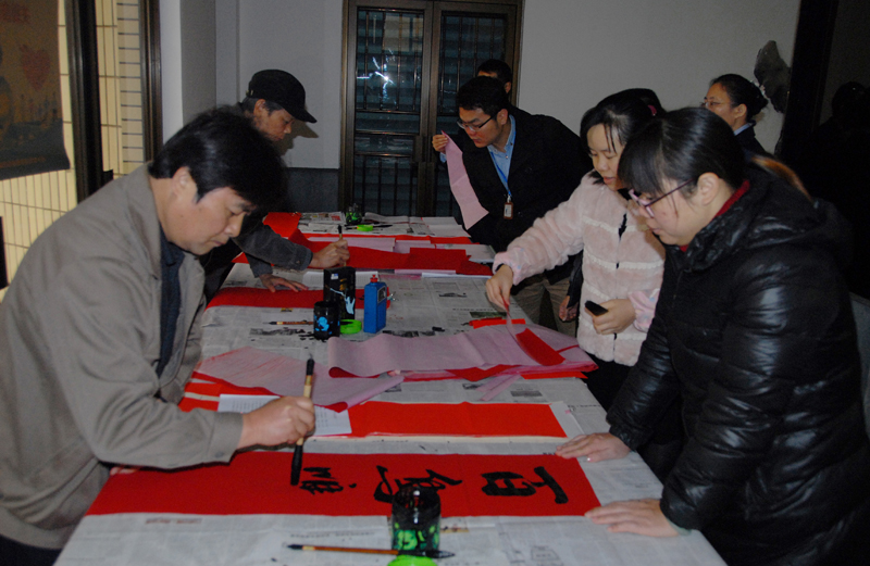 集团公司组织书法好手为员工写春联。刘卫强/摄