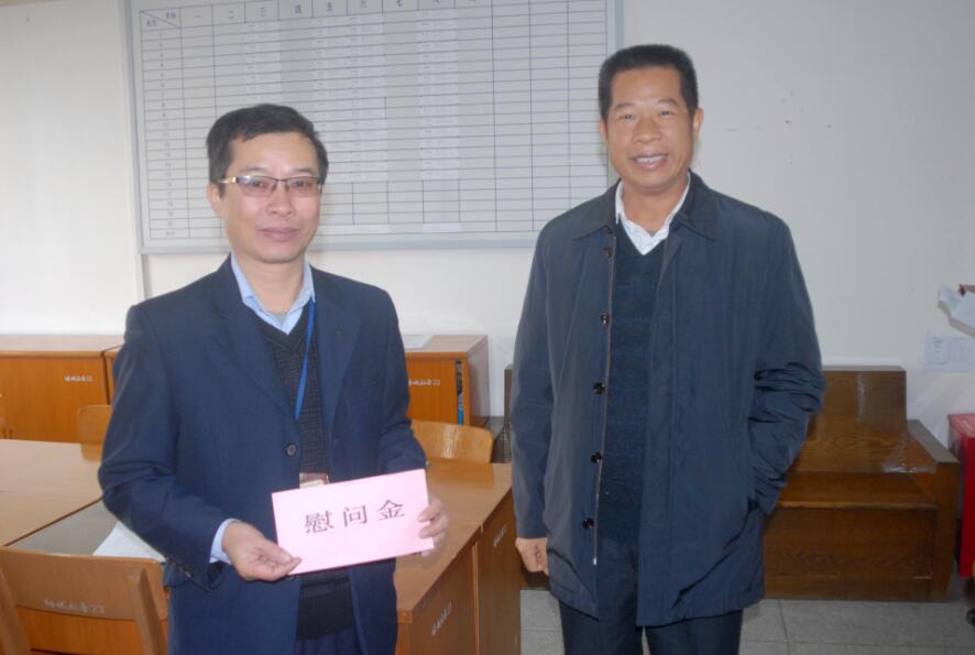 图为建宁水务集团工会主席陈瑞有慰问困难员工