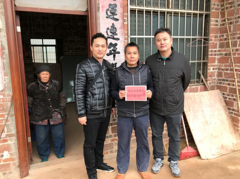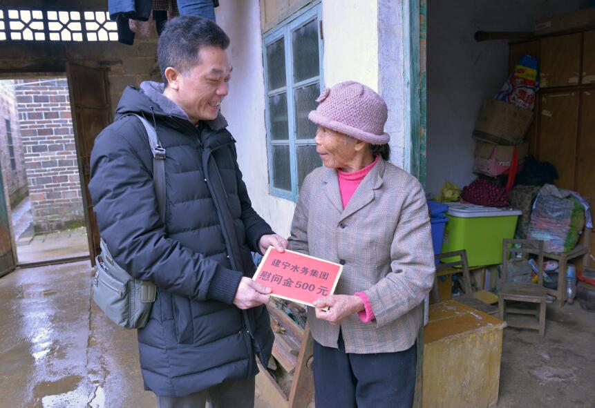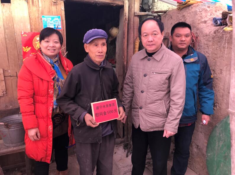图为建宁水务集团顾问葛春慰问定点帮扶贫困村困难群众