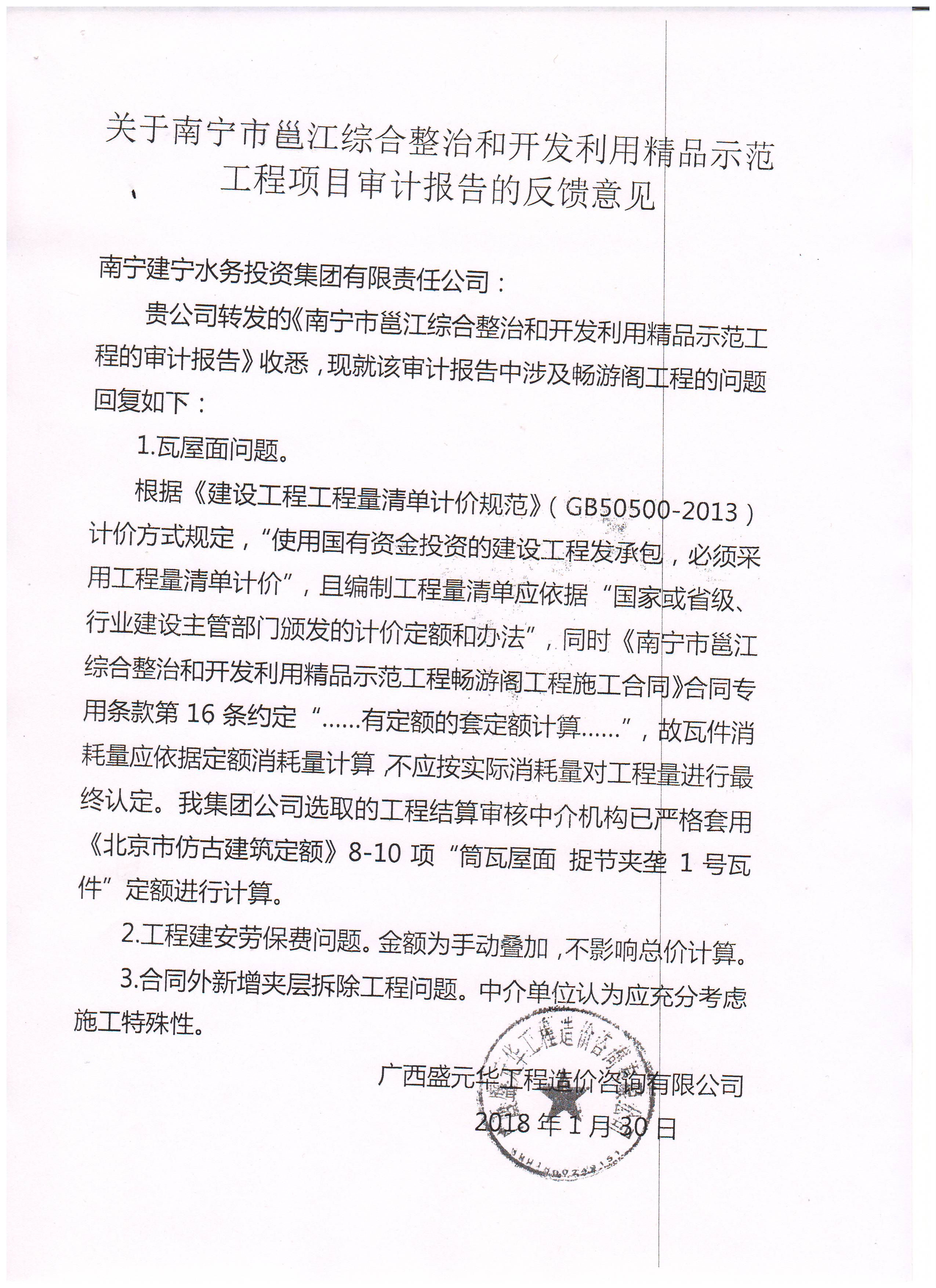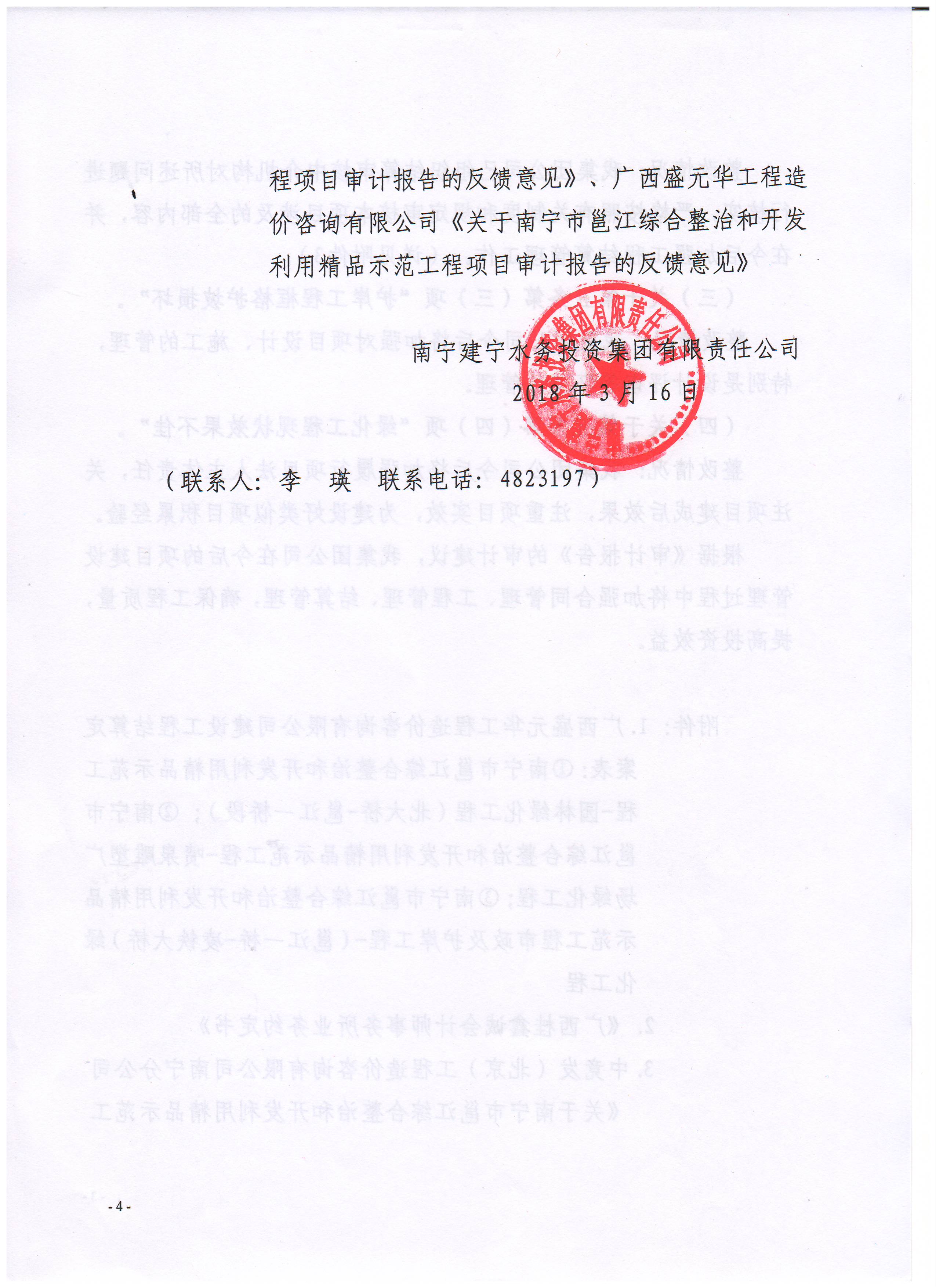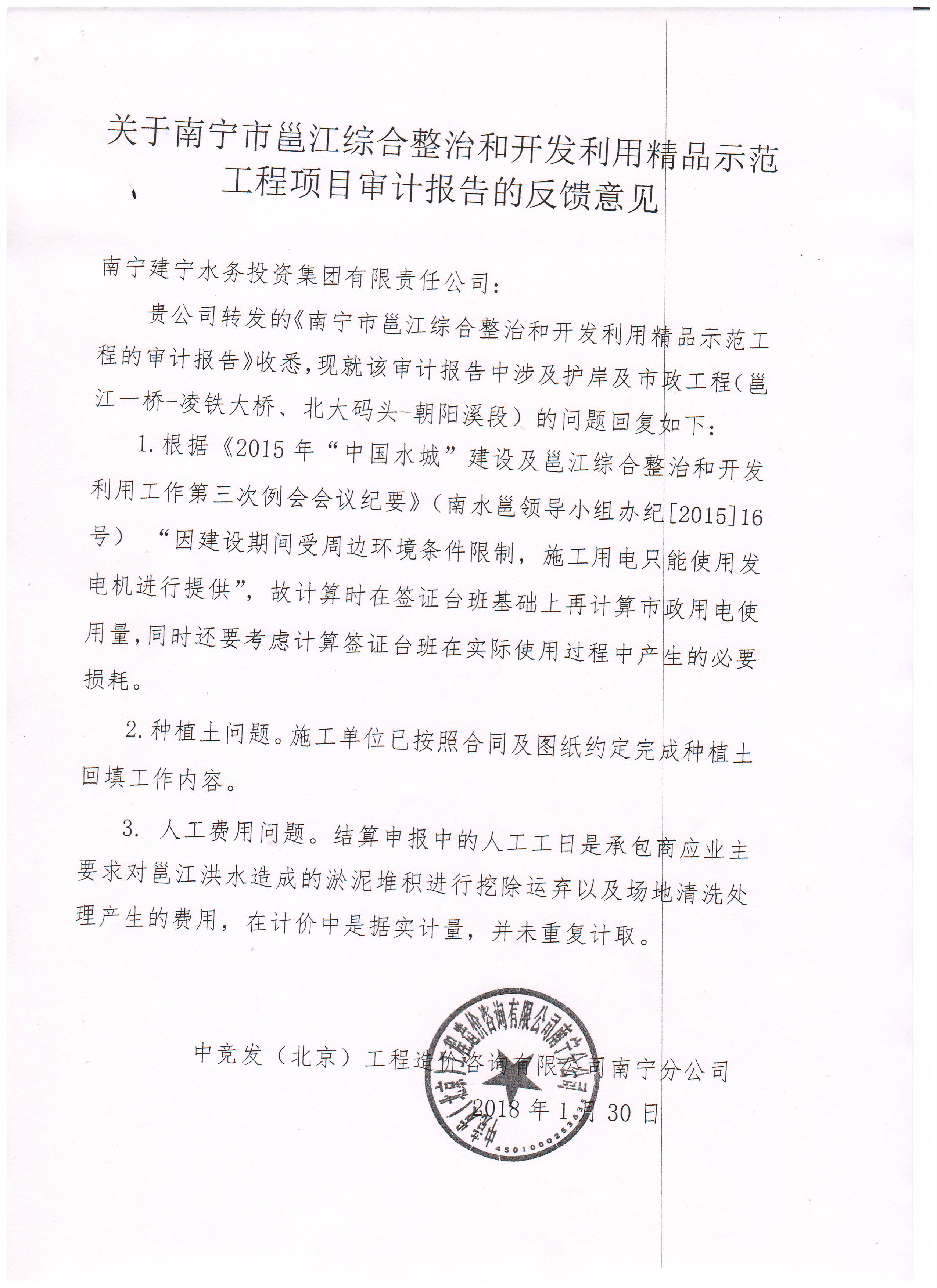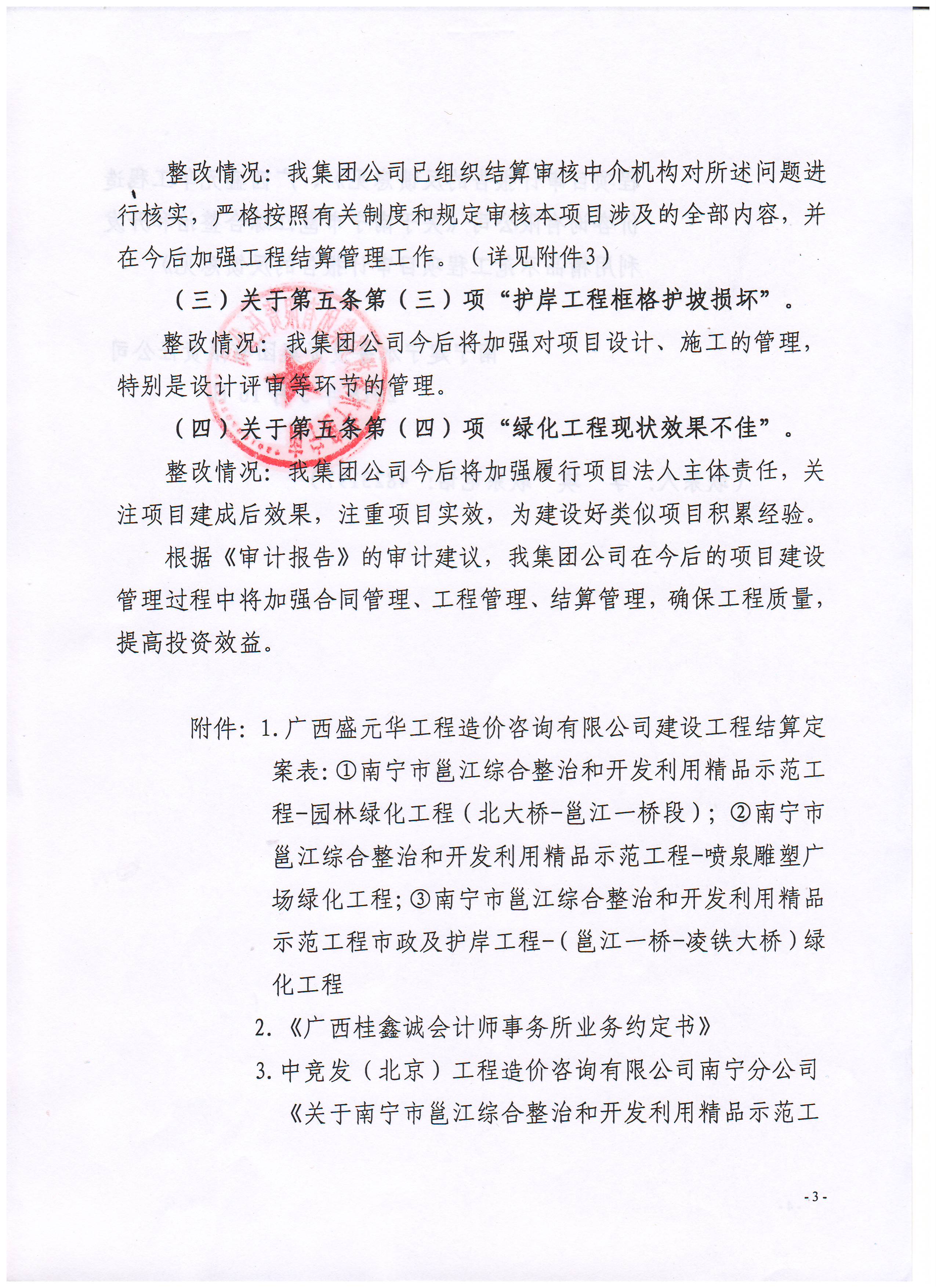 《南宁市审计局关于南宁市邕江综合整治和开发利用精品示范工程竣工财务决算审计的审计报告》整改情况报告的公示
