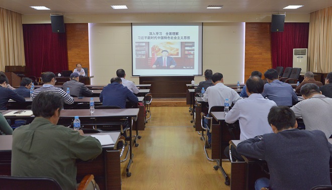 当天上午,首先由南宁市委宣传部讲师团优秀讲师、南宁市政协《政协志》特聘专家谭本基教授为大家作习近平新时代中国特色社会主义思想主题宣讲。谭本基对习近平新时代中国特色社会主义思想的丰富内涵、主要特色、历史贡献,以及如何学习贯彻等进行了全面、系统的解读,对我们进一步深入学习习近平新时代中国特色社会主义思想起到了很好的指导和帮助作用。