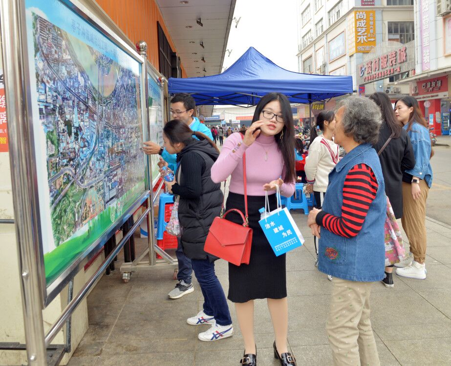 本次宣传活动为期一天,上午在淡村市场,下午在江南水街。在淡村市场活动现场,工作人员在活动附近区域发放宣传折页、在展板区为市民讲解项目黑臭水体治理简介、进展情况、治理效果等内容。为吸引市民参与,主办方还设计了居民签到送礼品活动,在签到处只要答对关于黑臭水体治理有关问题,就能免费领到精美的礼品。在宣传知识的同时,让市民自觉树立起水环境保护意识,共同为维护美好环境,守护首府绿水青山。