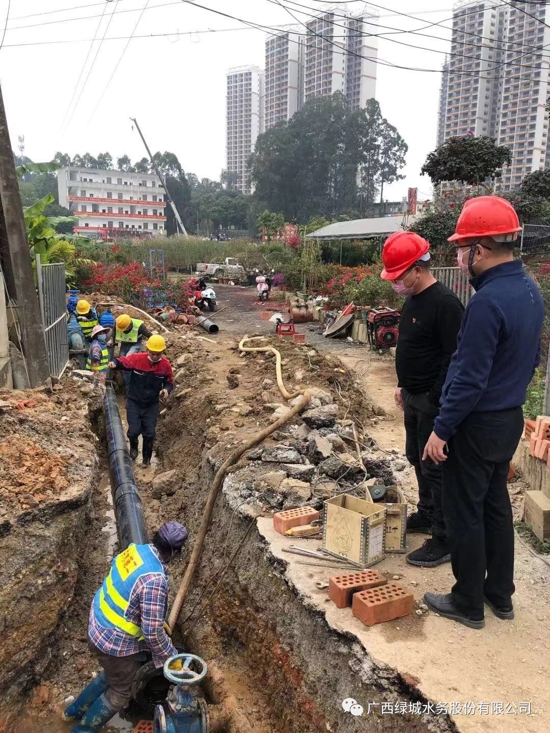 生命重于泰山。绿城水务要求参建各单位将邕武医院供水系统改建保障任务作为当前的头等大事,按照优化营商环境重点报装用户的服务标准,组织最优秀的施工队伍,特事特办,不讲条件、不计成本,全速推进。公司党委号召党员领导干部和广大党员在关键时刻挺身而出,勇于担当,冲锋在前,在特殊时期以实际行动践行初心使命,齐心协力,众志成城,全力以赴加快抗疫配套设施建设,坚决打赢这场没有硝烟的战争。