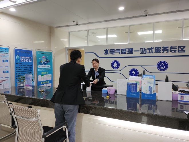 图为:集团公司不断提高服务水平,水电气受理一站式服务专区高效为用户 办理业务。