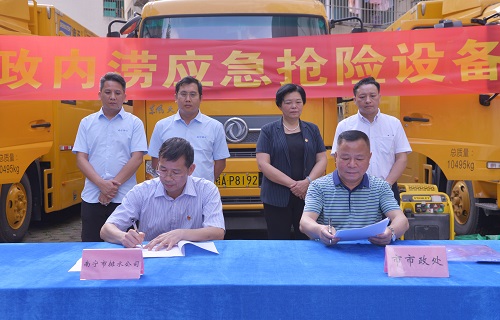 今年3月25日以来,我市陆续下了三场大雨,已造成一定的城市内涝,经排查统计共167处内涝积水点。为充分发挥内涝应急抢险设备的作用和专业技术优势,提高城市内涝应急抢险工作效率,切实做好防内涝工作,排水公司积极向主管部门申请协调使用内涝应急抢险设备。根据市政府的相关批示精神,将南宁市市政工程管理处内涝应急抢险设备移交排水公司使用,本次移交内涝应急抢险设备包括“龙吸水”排水抢险车1辆、迪沃排水抢险车2辆、史丹利液压动力站1套及潜水泵4台。