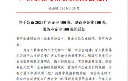 喜报!集团公司荣获“2024广西企业100强”“2024广西服务业企业50强”