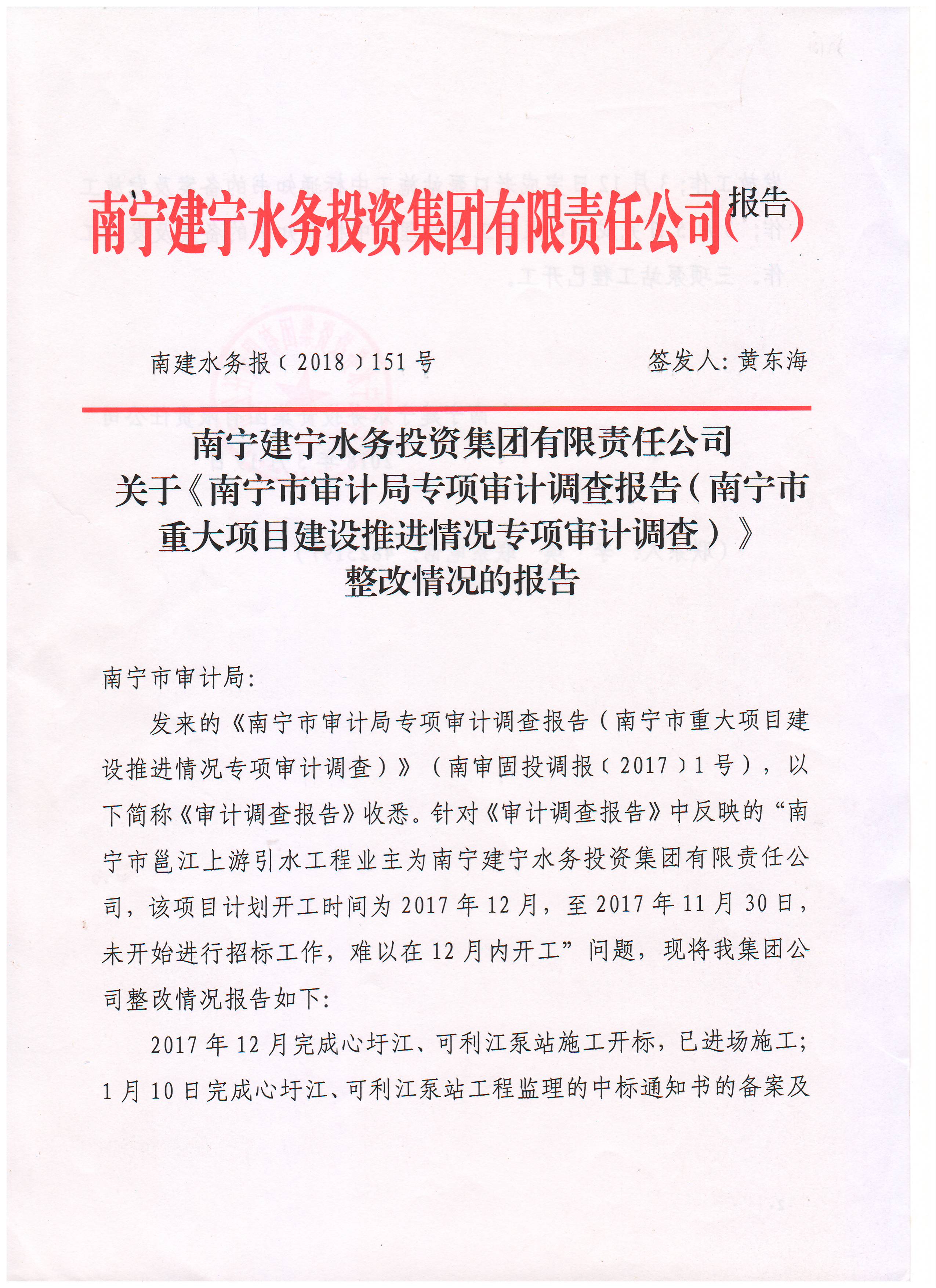 《南宁市审计局专项审计调查报告(南宁市重大项目建设推进情况专项审计调查)》整改情况报告的公示